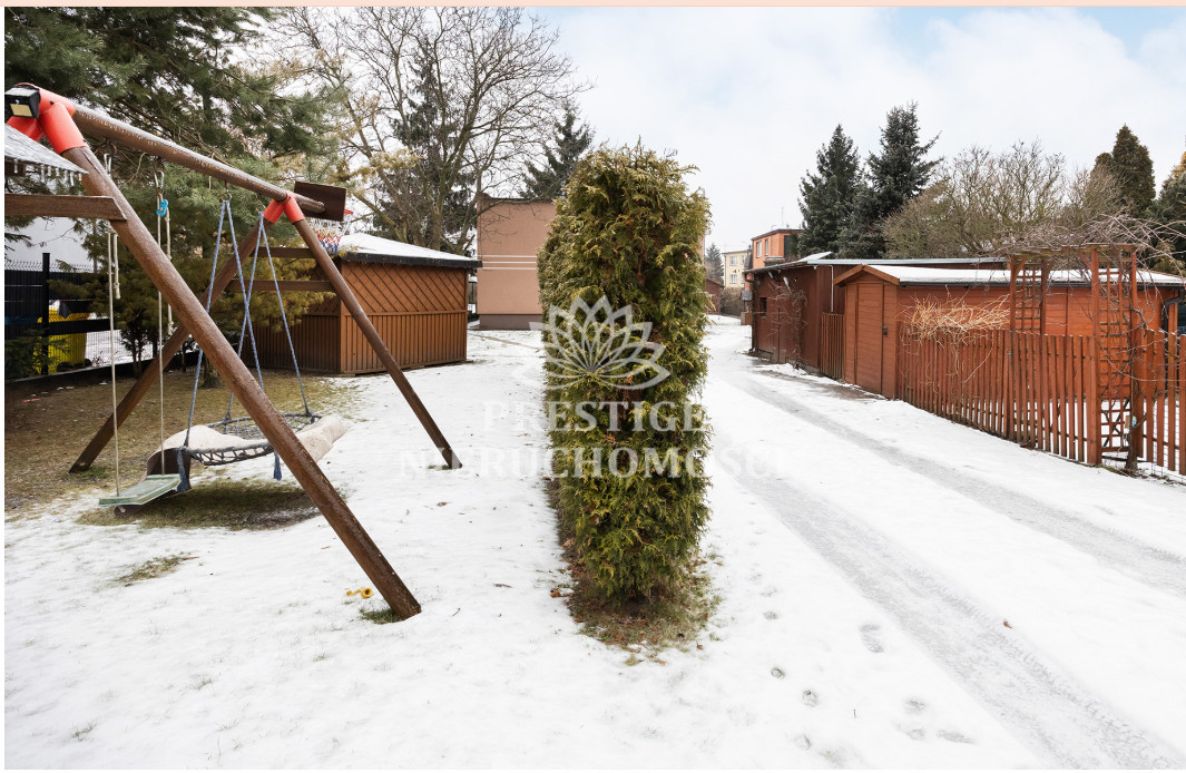 Nieruchomość położona jest na dużej, pięknie zagospodarowanej działce o powierzchni 1600 m². Ogród zachwyca zielenią i funkcjonalnym podziałem - znajdują się tu strefy wypoczynkowe zarówno dla dorosłych, jak i dla dzieci, idealne do relaksu i spędzania czasu na świeżym powietrzu. Na działce znajduje się również drewniany garaż i domek narzędziowy. Nieruchomość ogrodzona , dwa wjazdy na posesję.