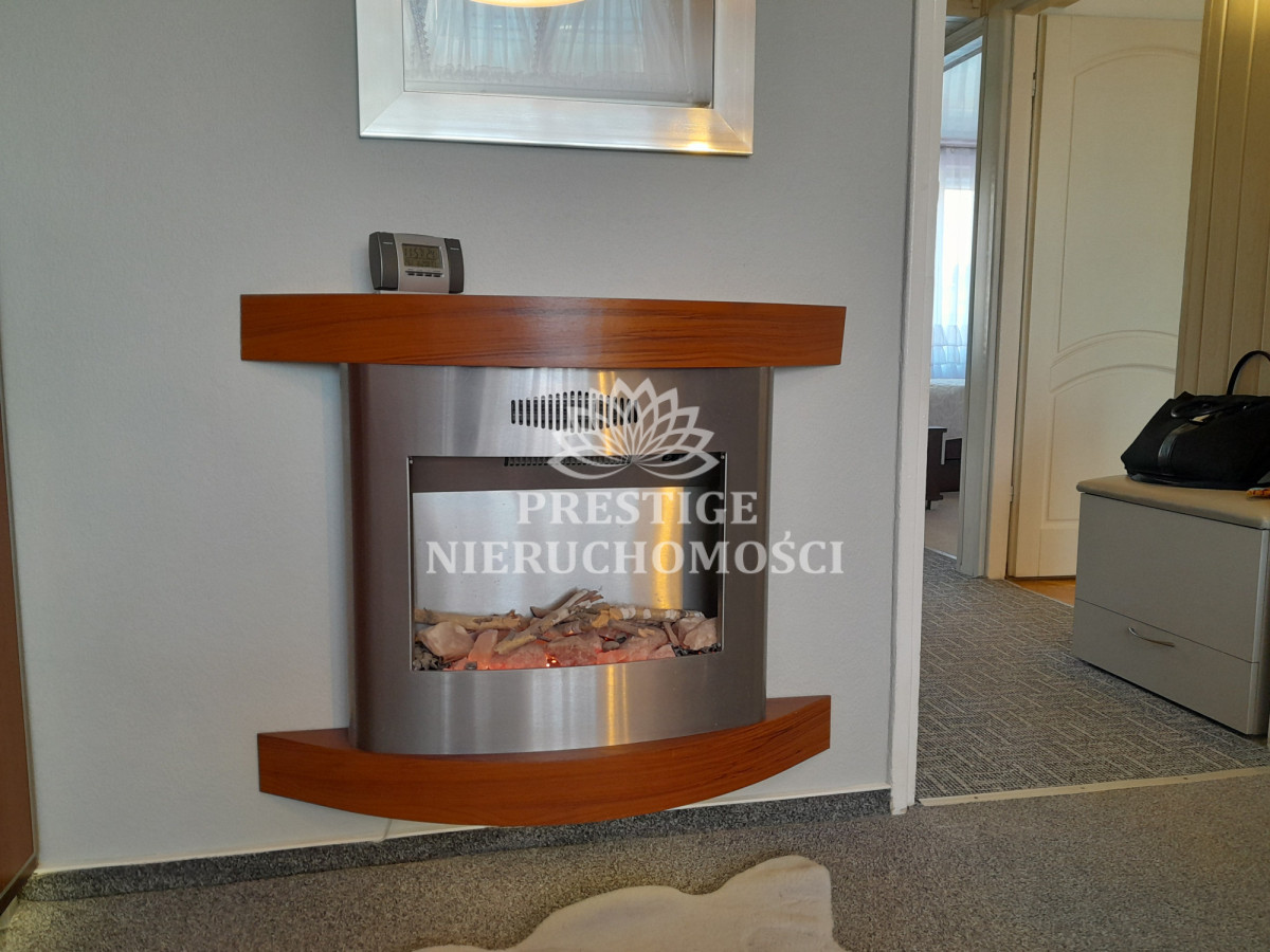 Mieszkanie jest gustownie i bogato wyposażone. W salonie znajduje się kominek, który nadaje