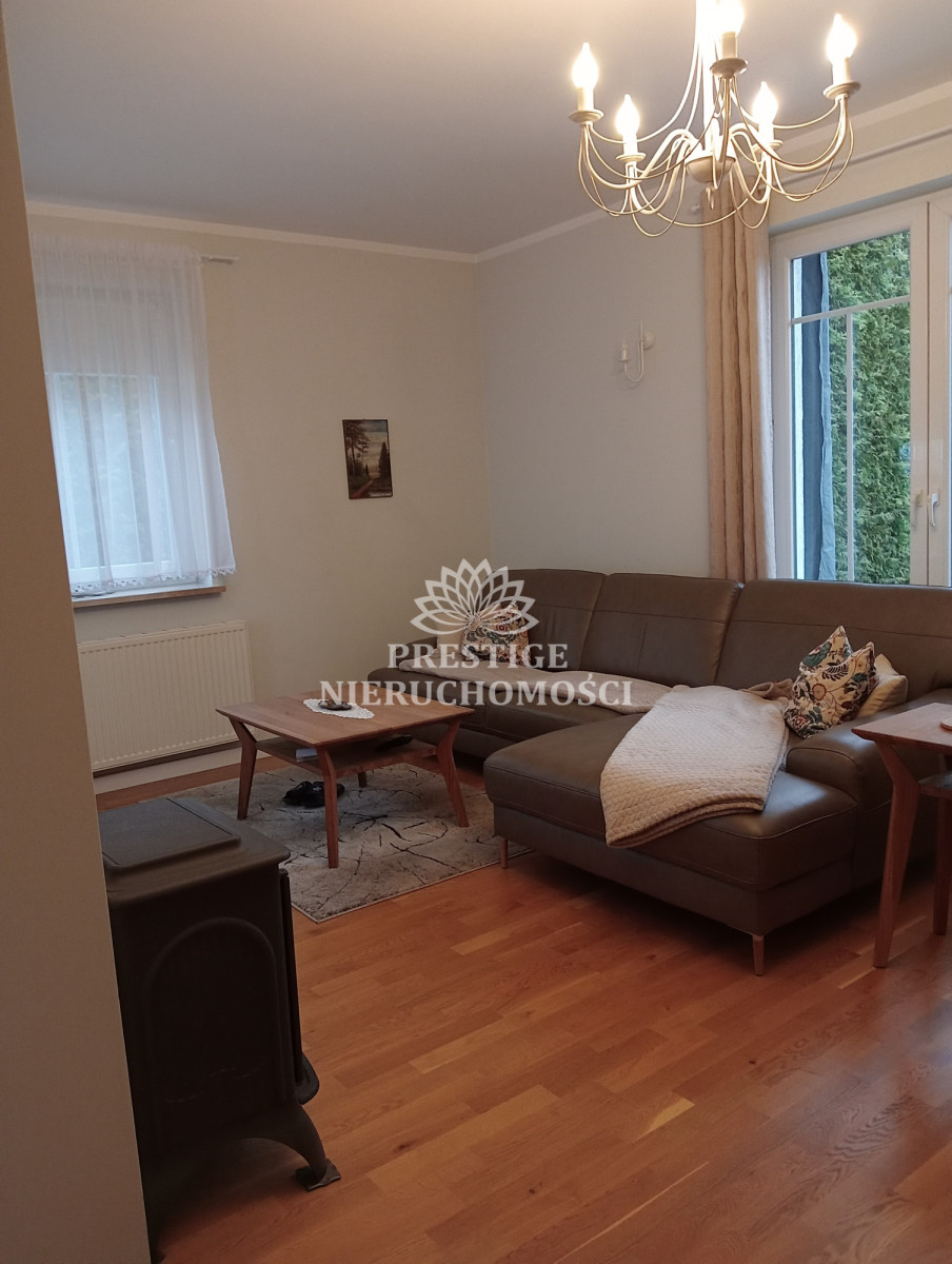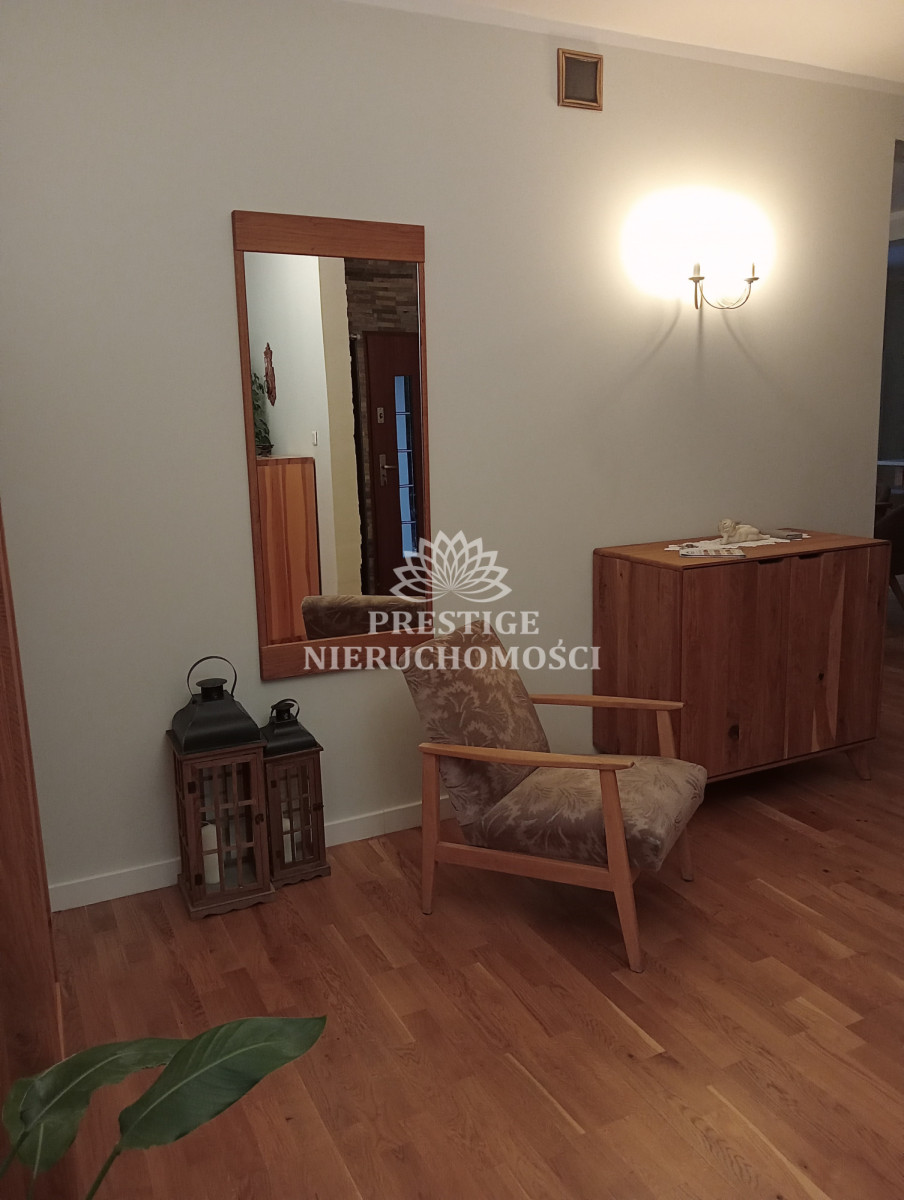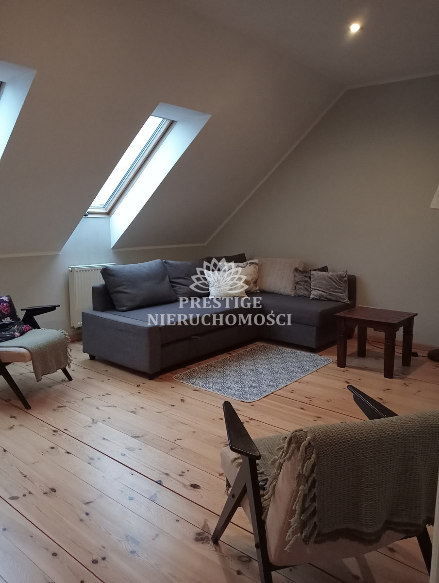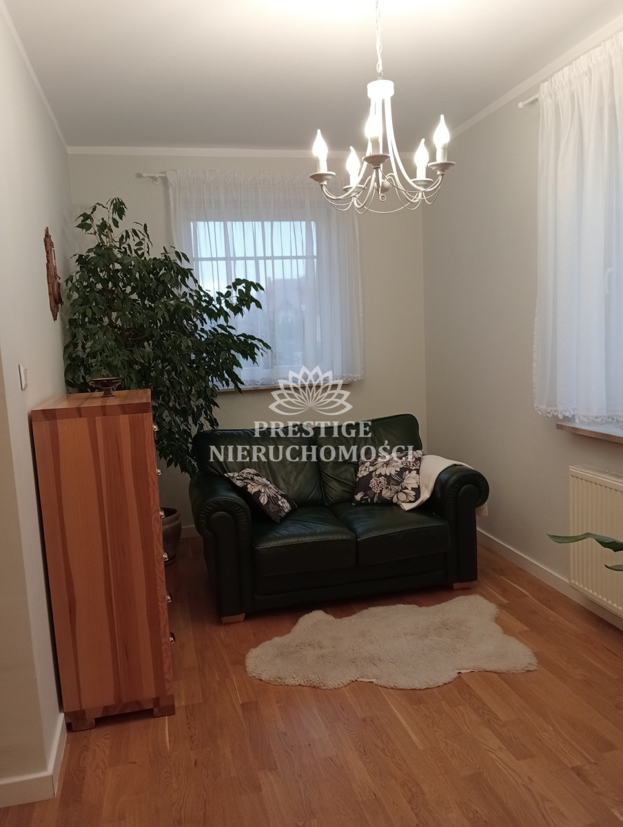 W głównej sypialni właściciele zostawiają przepiękne meble wykonane z czeczotu. Podłogi w pokojach drewniane, sosnowe, w łazience płytki w kolorze jasno-szarym. Strych ocieplony, z podłogą drewnianą i oknem przeznaczony do przechowywania rzeczy sezonowych.