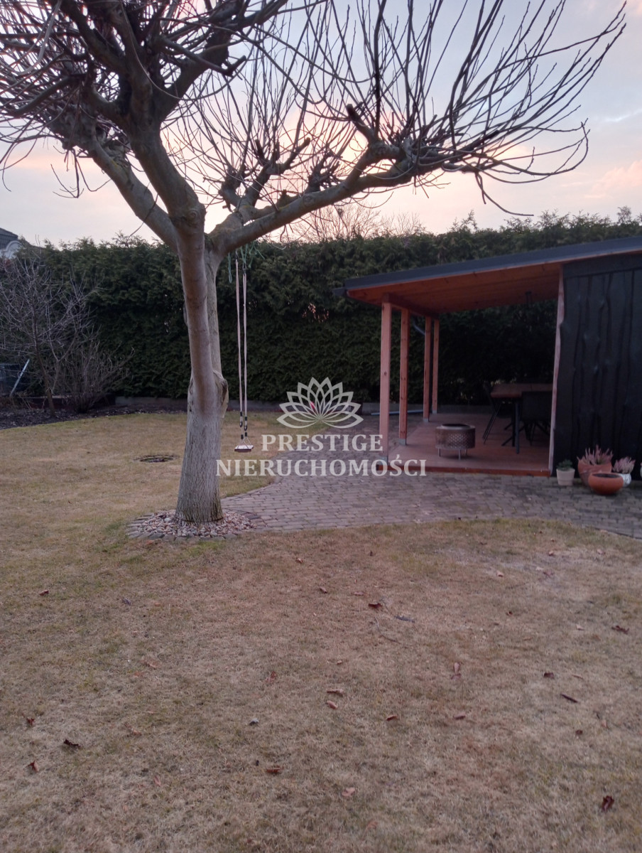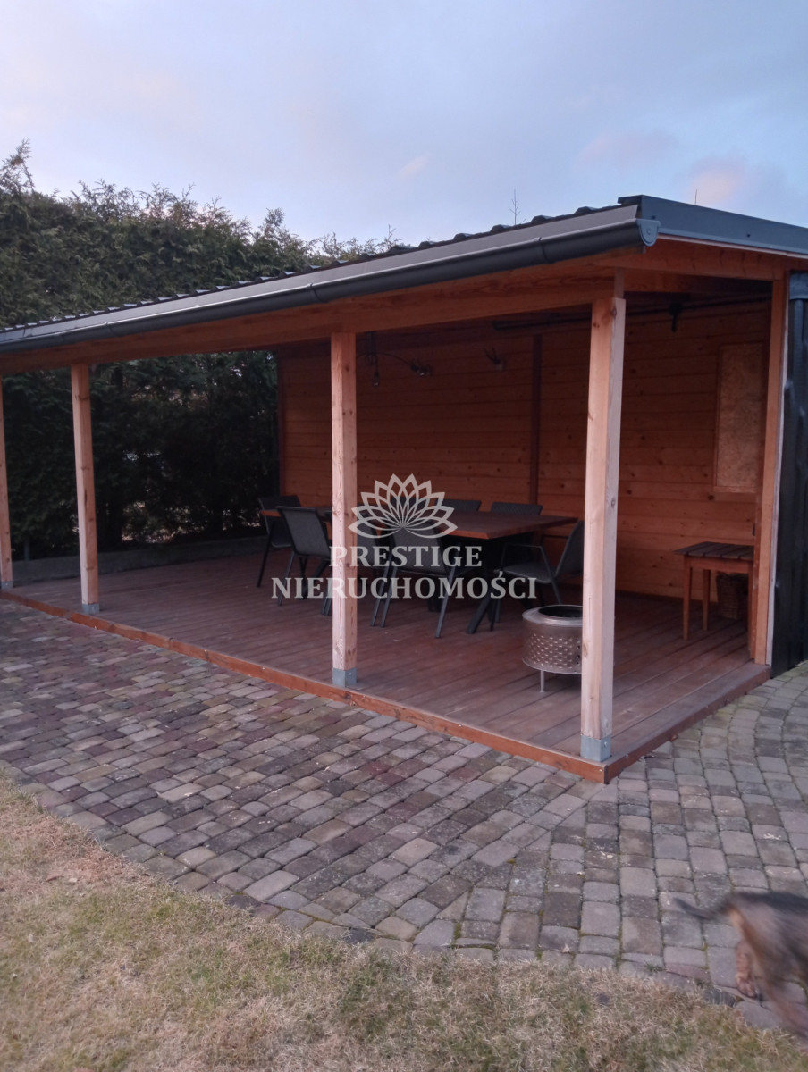 Okna z salonu i kuchni prowadzą na taras od zachodniej strony co daje piękne naświetlenie pomieszczeń oraz idealny wypoczynek w pogodne dni. Z tarasu możemy podziwiać ogród który ma liczne nasadzenia i drzewa dające cień gdy słońce doskwiera. W ogrodzie znajduję się altana drewniana, zadaszona idealna do biesiadowania rodzinnego, oraz domek gospodarczy w którym oprócz narzędzi mamy pompę do studni i sterowanie nawadnianiem w ogrodzie. W rogu ogrodu mamy możliwość uprawy warzyw w wydzielonym warzywniaku.