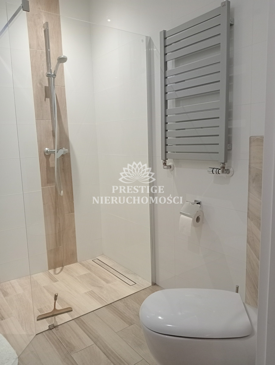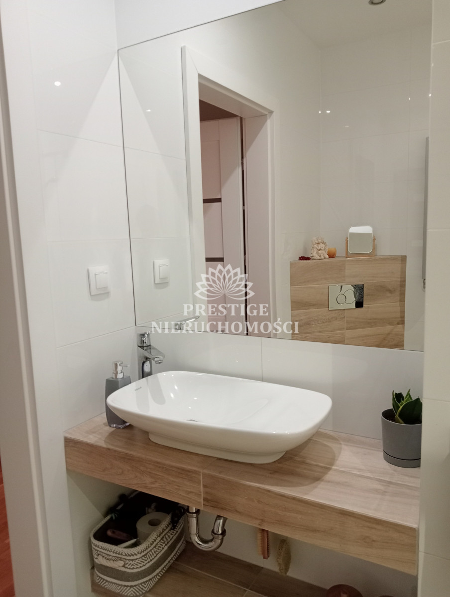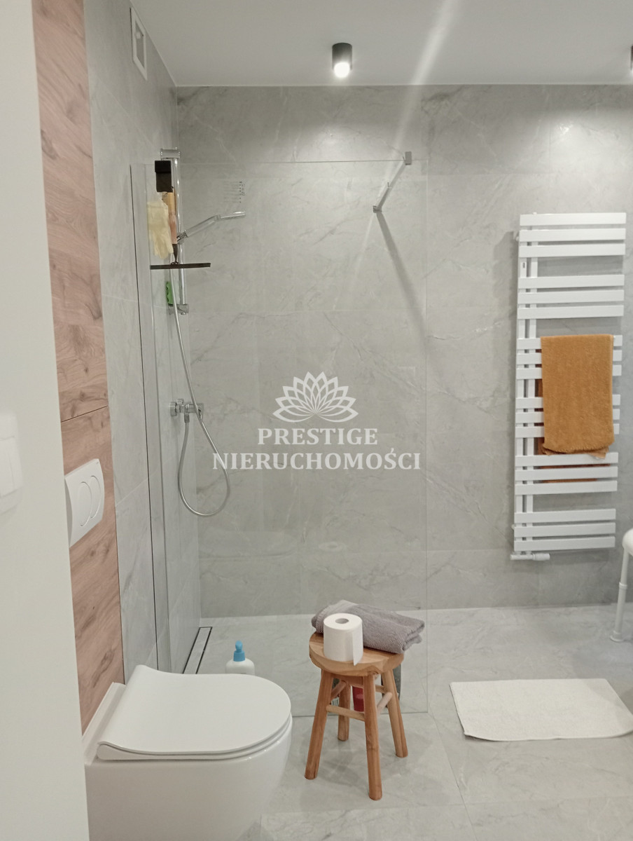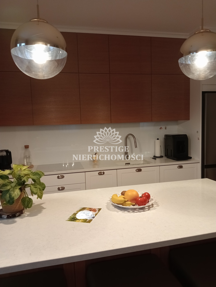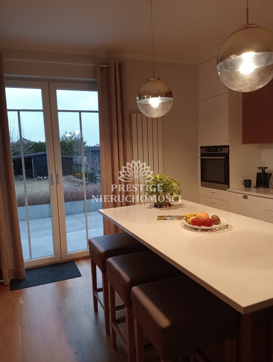 Na parterze przestrzeń wypełnia piękny salon połączony z jadalnią i kuchnią w jasnych kolorach, na podłogach deska barlinecka wymieniona cztery lata temu. Kuchnia z wyspą, blatem kamiennym i wyjściem na taras. Sprzęt typu: płyta indukcyjna, okap, piekarnik i nowa duża lodówka zostają.