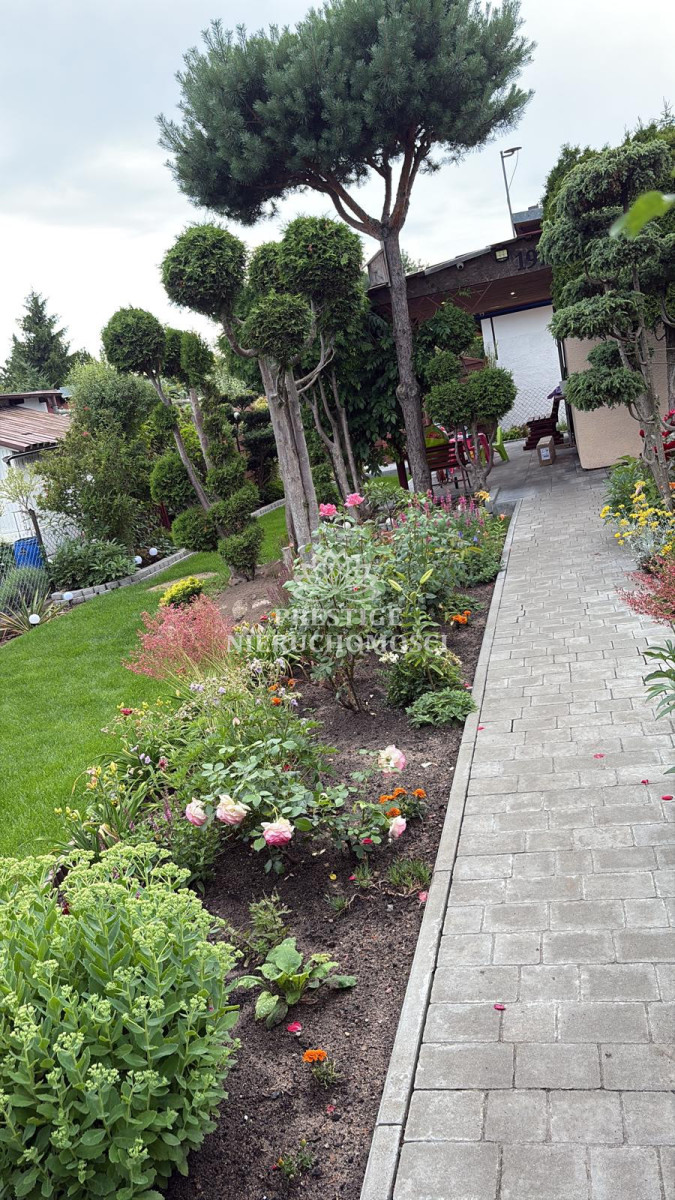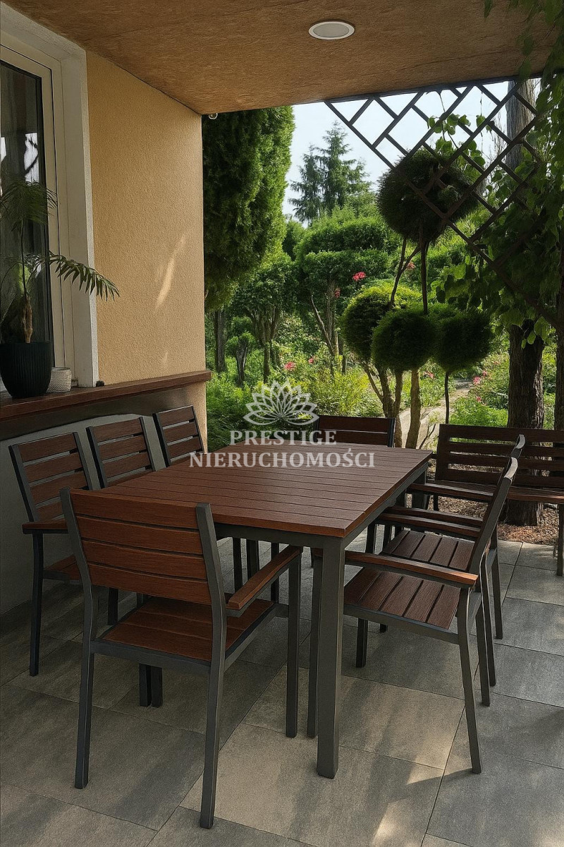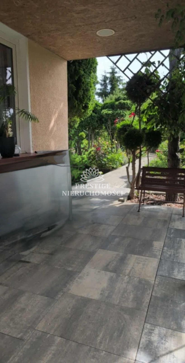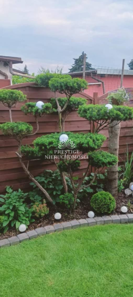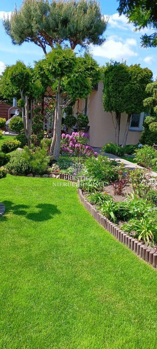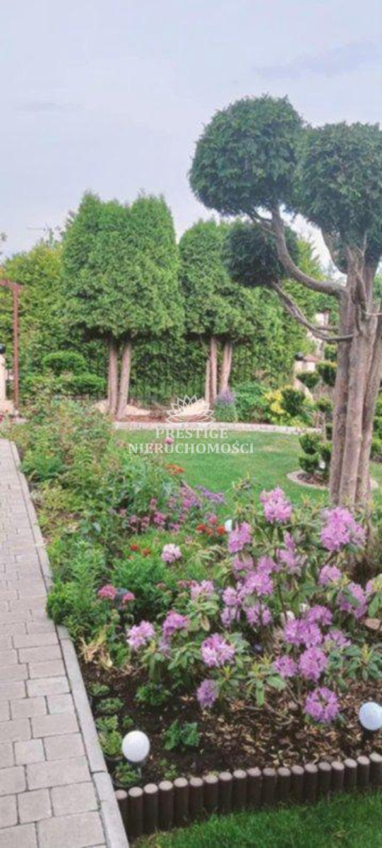 Ogród niezwykle malowniczy z licznymi nasadzeniami kwiatów, drzewek iglastych, uformowanych w niezwykłą architekturę zieleni, 2 sterowane fontanny, murowany grill oraz domek drewniany na narzędzia.