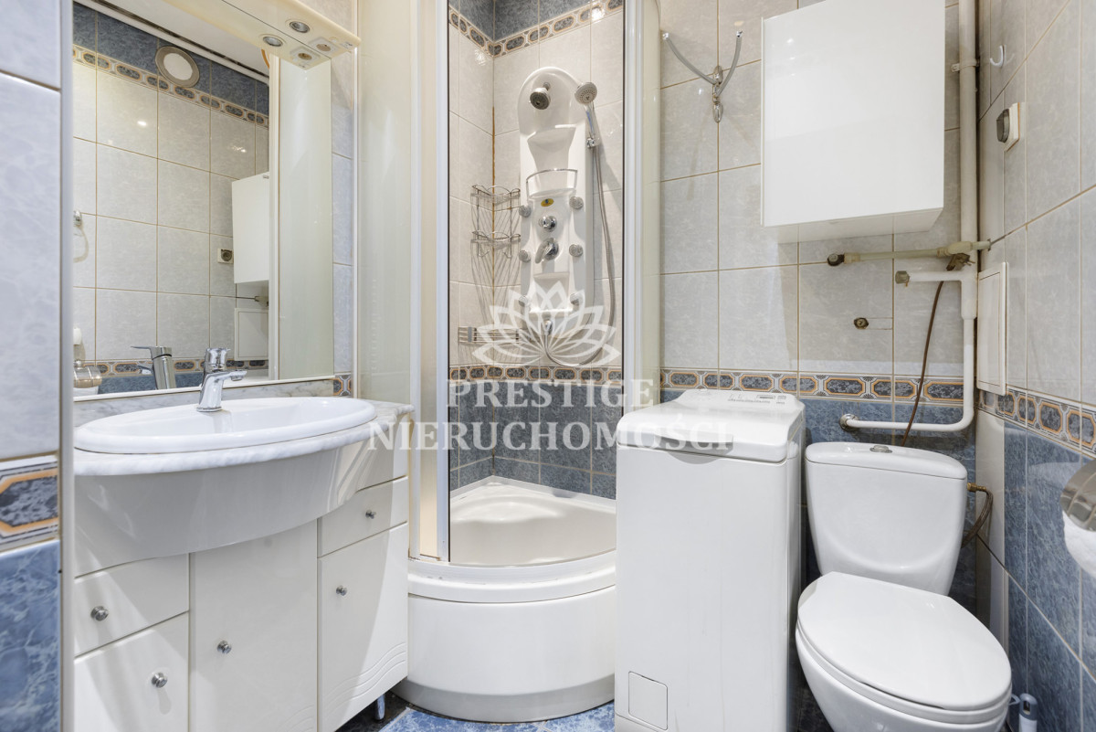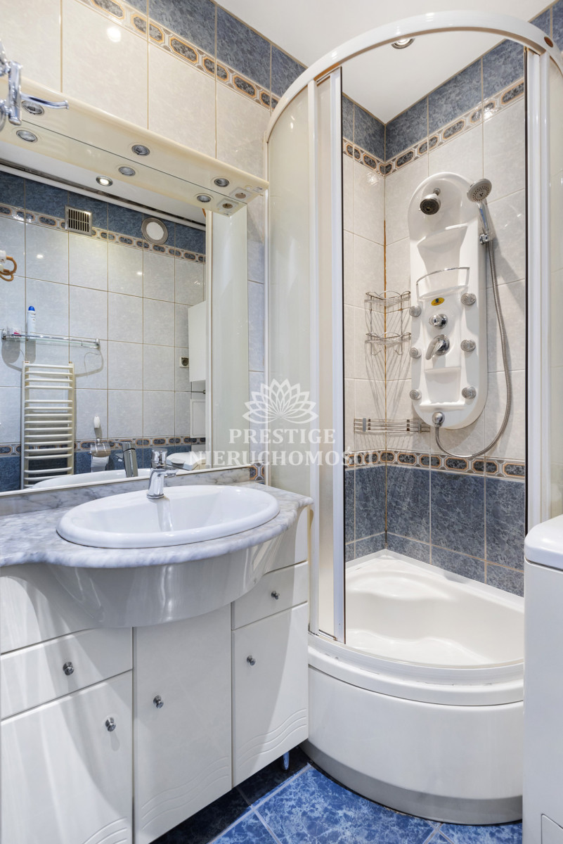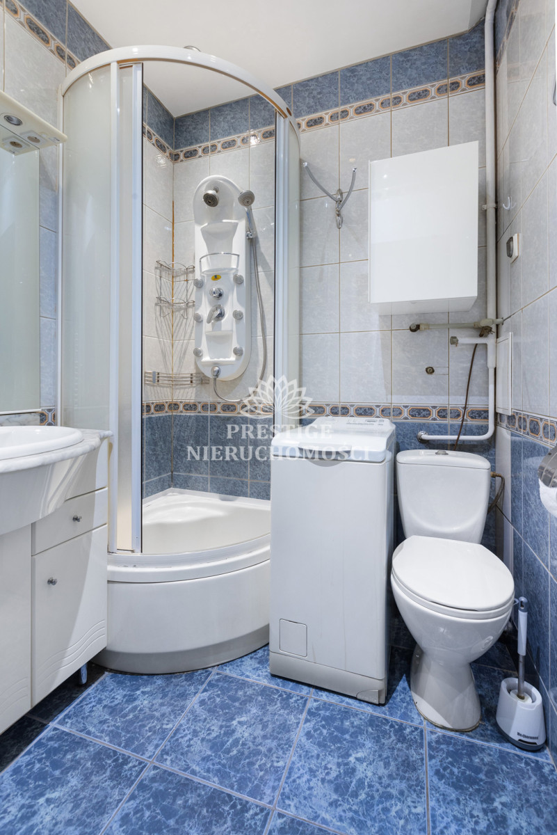 - łazienka z kabiną prysznicową z hydromasażem, toaletą i pralką