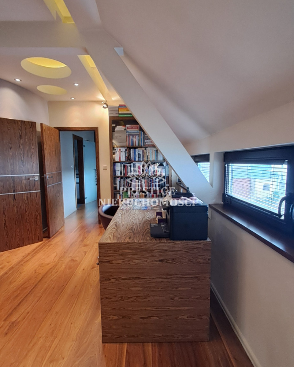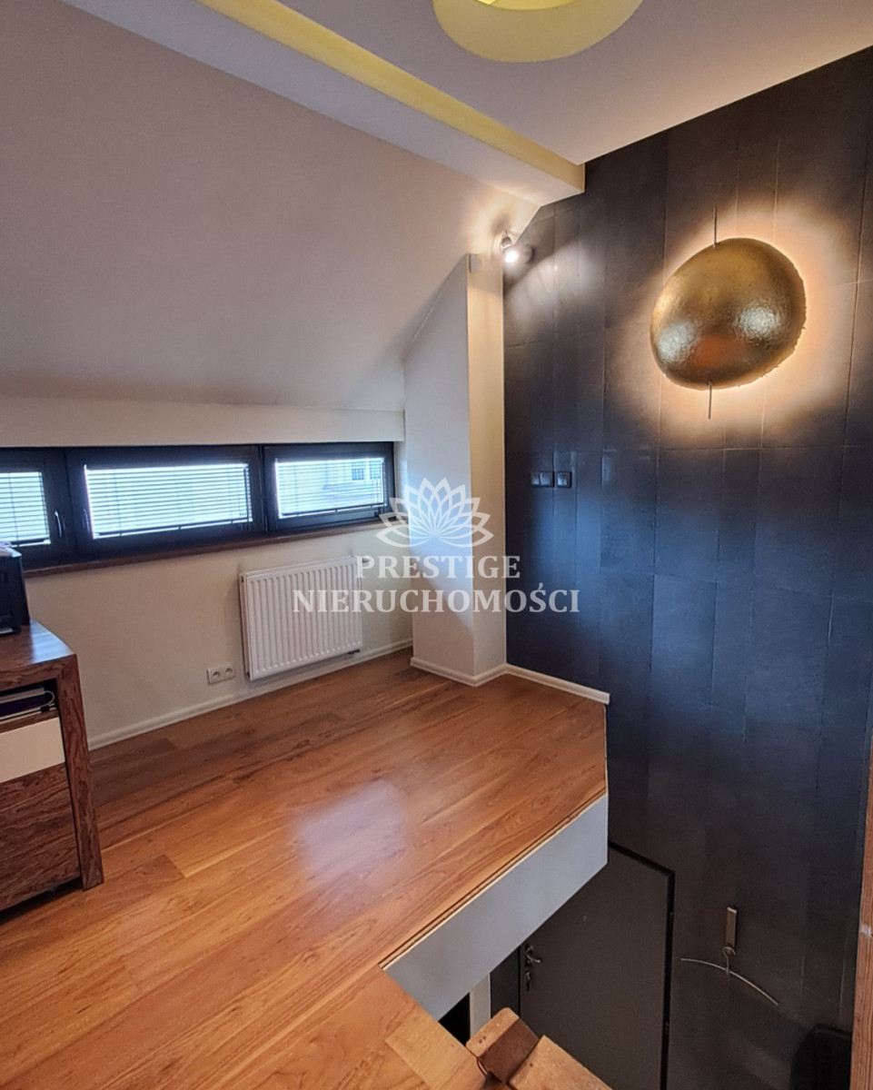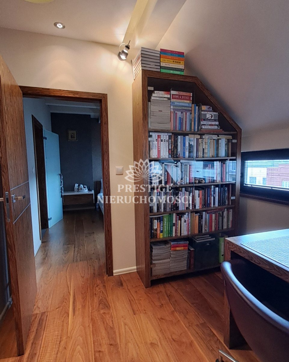 Na drugim poziomie :przestronna sypialnia , łazienka z prysznicem z wc , garderoba ,biblioteka . Przestrzeń do pracy (idealna do prowadzenia biura, możliwość wygodnej pracy z domu)