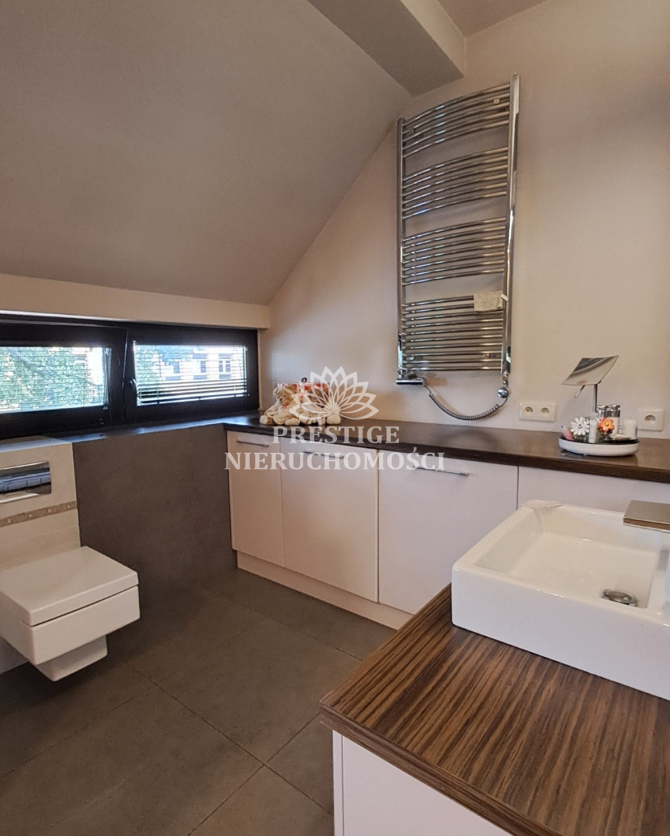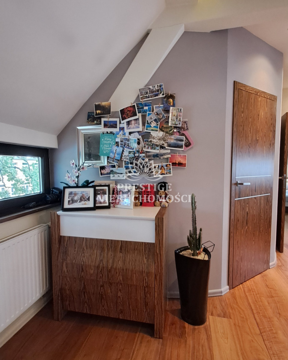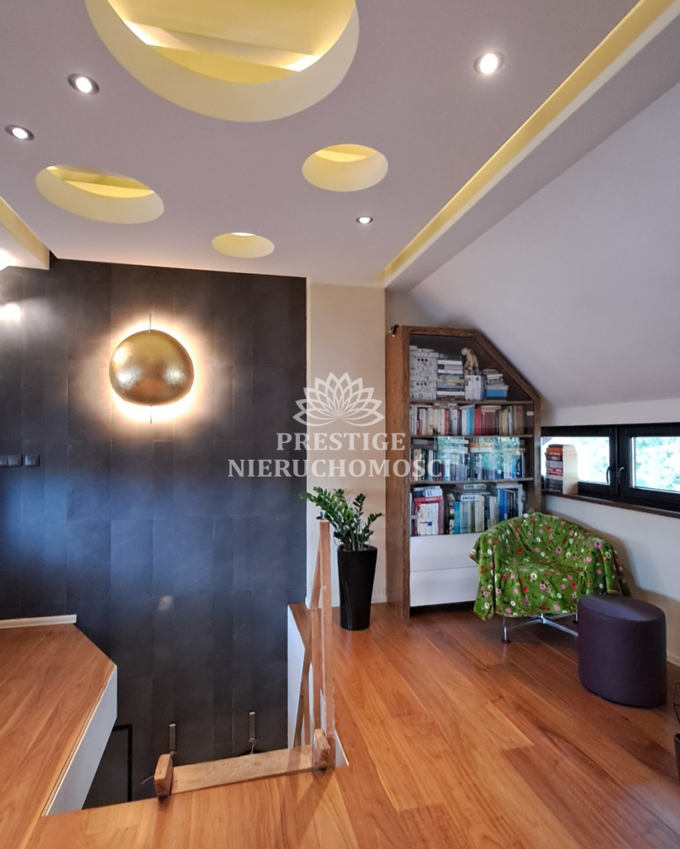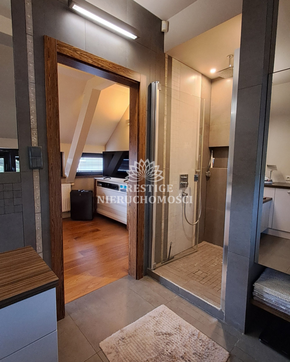 Na drugim poziomie :przestronna sypialnia , łazienka z prysznicem z wc , garderoba ,biblioteka . Przestrzeń do pracy (idealna do prowadzenia biura, możliwość wygodnej pracy z domu)