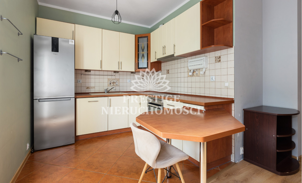 Kuchnia jest w pełni urządzona - meble w zabudowie + sprzęt AGD (lodówka, zmywarka, płyta indukcyjna, piekarnik).