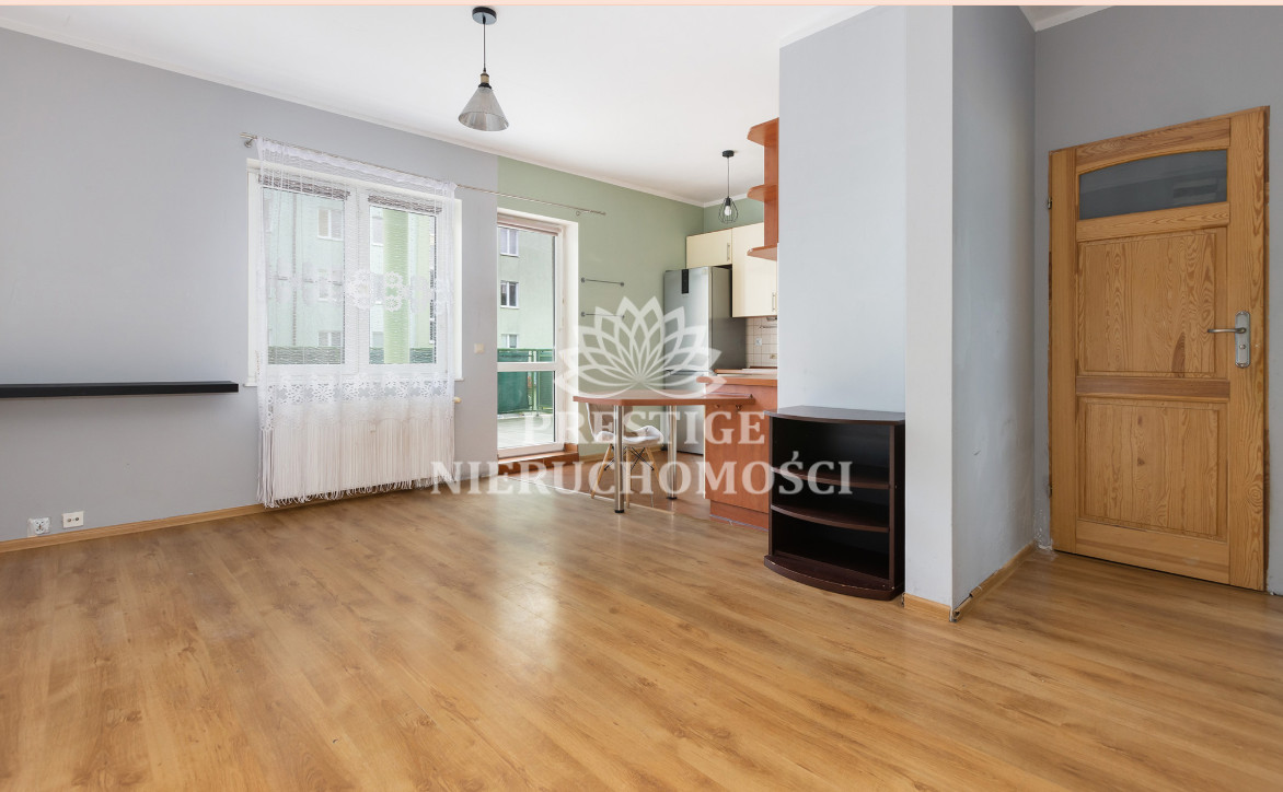 Mieszkanie ma 44,91 m² i znajduje się na parterze niskiego, trzypiętrowego bloku.